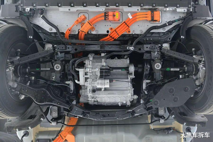 这款车目前全系都是后驱单电机,前副车架上方空出很大空间,绝对可以做成前后双电机的四驱版本。