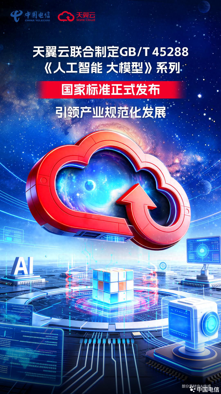 近日,天翼云联合中国电子技术标准化研究院等众多单位及行业专家共同制定GB/T45288《人工智能大模型》系列国家标准,并通过国家标准化管理委员会官网正式发布,其中《通用要求》和《评测指标与方法》率先落地,不仅为大模型发展确立统一标准,更构建了云计算场景下智算与大模型协同发展的核心规范。