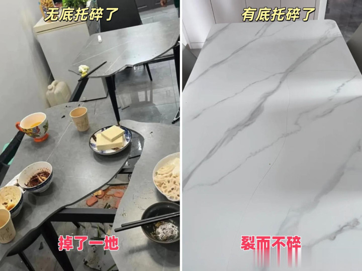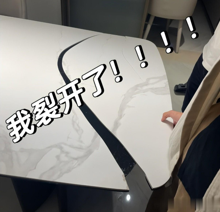 之前就有网友分享自己家的岩板餐桌,还没用几次,正吃饭的时候,突然坏了……